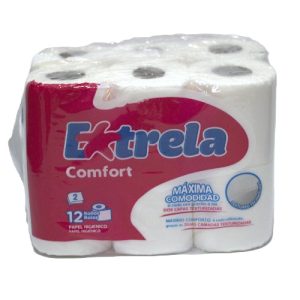 Papel Higiênico Doméstico Estrela FD Pack de 12 c/108 rolos -
