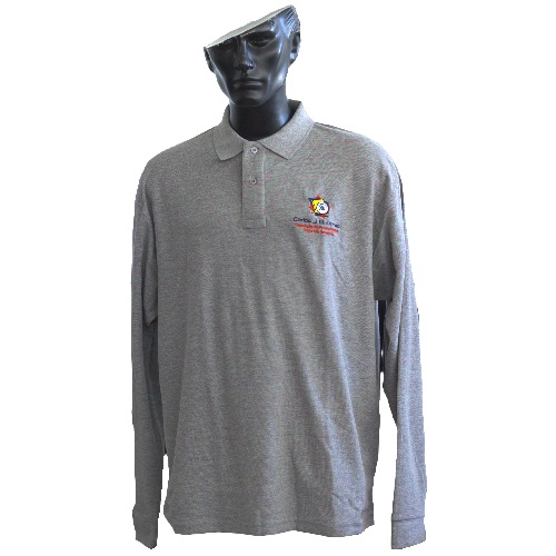 Polo simples com gola de abas com botões à frente. Manga comprida, apresentando um bordado delicado na frente. Acabamentos em nervuras.